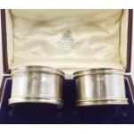 A Hamilton & Inches cased pair of Sterling Silver napkin rings. gross weight 82.5g approx. Hallmarks for Chester, maker P & Co.