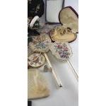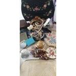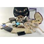 A great collection of vintage clutch bags,dressing table set and some good quality vintage jewellery including Pearls, brooches and much else.