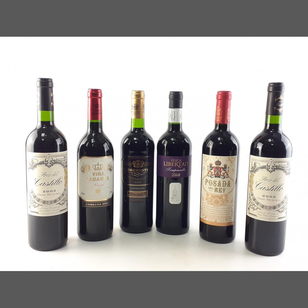 A selection of six RED WINE. Arco Del Castilla 2003 x 2, Oromonte , Vina Labarta, Posad Del Rey, good selection, appears well stored.
