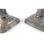 A pair of fully hallmarked STERLING SILVER presentation candlesticks. With indistinct Sheffield hallmarks. Each engraved H.M.C.S. 1867. weighted bases. Total gross weight 1060g approx.