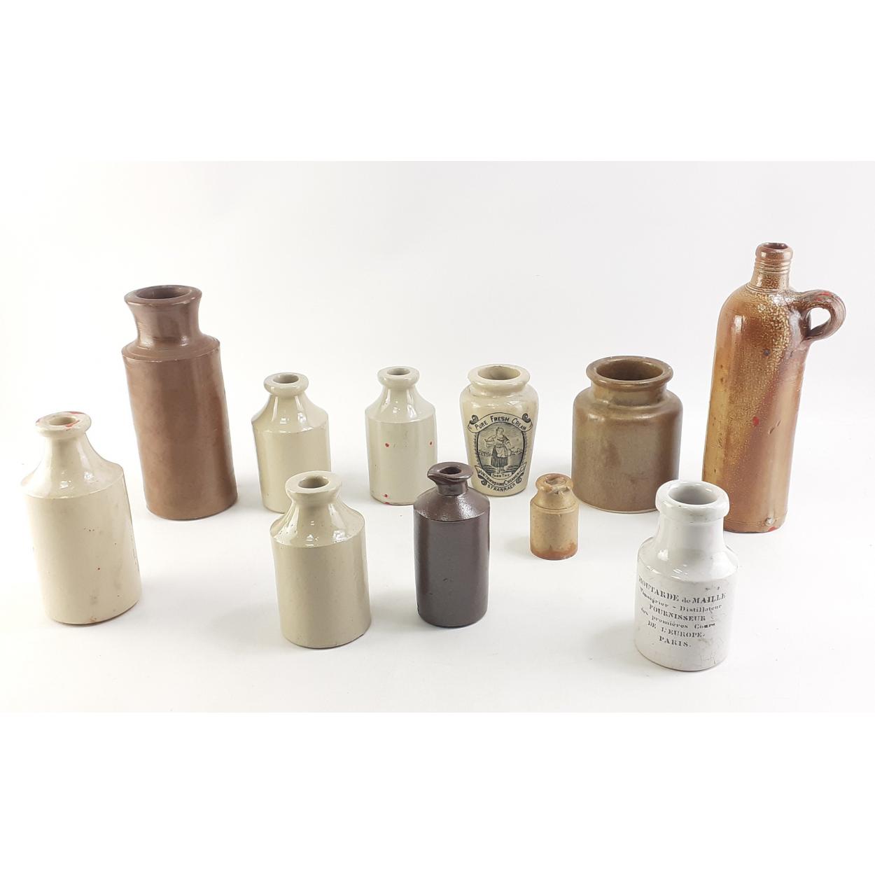 Collection of stoneware bottles, one with "PURE FRESH CREAM FROM THE WIGTOWNSHIRE CREAMERY STRANRAER". Tallest 32cm approx