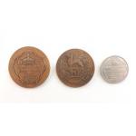 COINS. assorted world coins. To include Leith masonic token, two OLYMPIC GAMES large medallions, two small silver coins noted.