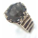 A lovely bark effect 9ct ring with Smokey quartz centre stone. Size O, Gross weight 4.2g
