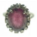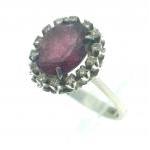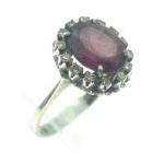 A 750 stamped white gold ring with central red stone and small diamonds. Size J, gross weight 3.2g