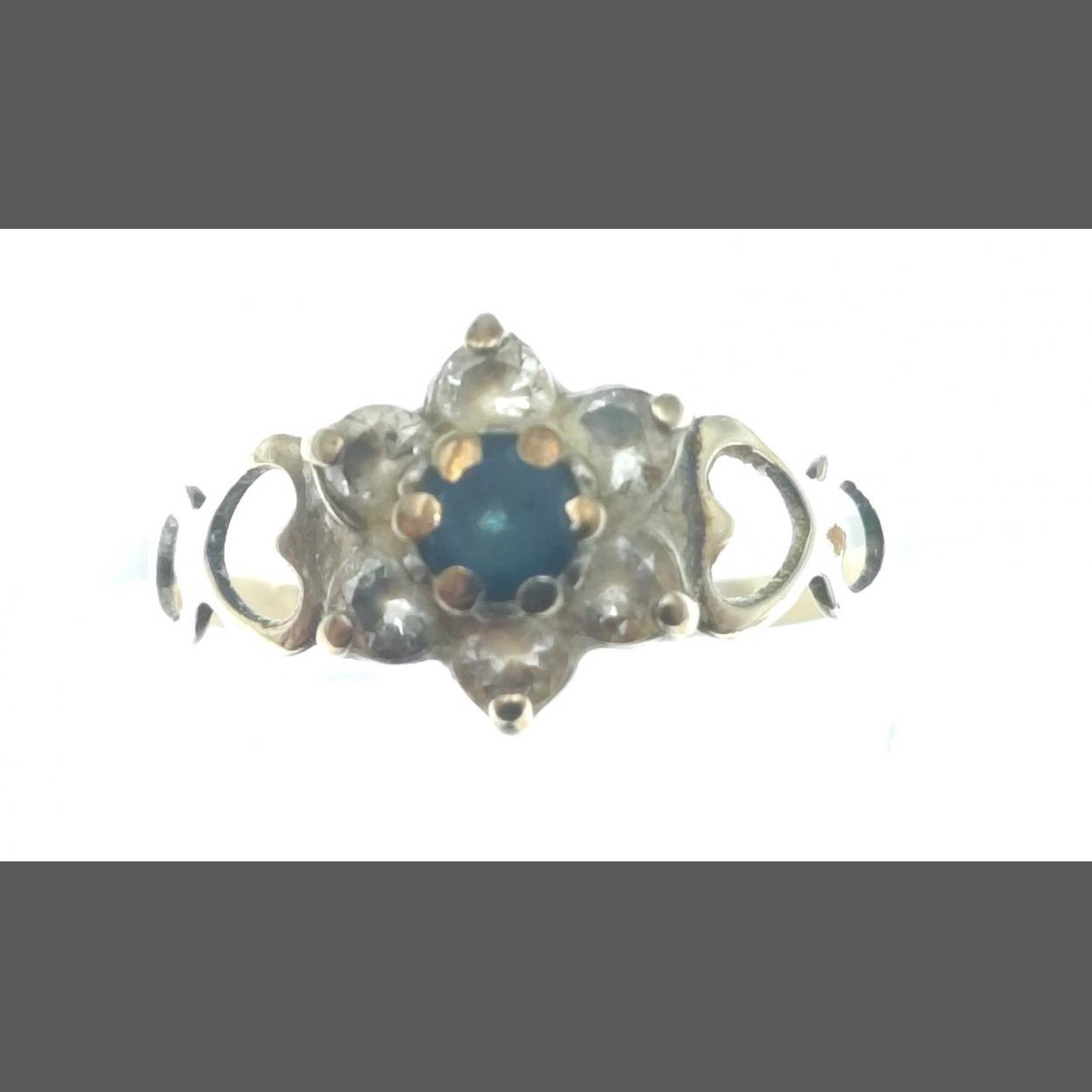 A 9ct gold ring with a central green stone and six small diamonds. Size L, gross weight 1g approx.