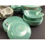 OLD FOLEY Oregon Pine part service. Includes eight twin handle soup bowls with saucers. eight bowls, gravy boat, six dinner plates and others.