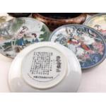 Mixed decorative lot, six oriental theme collectors plates, papier mache bowl, wooden barrel, decorative dish and others.