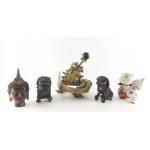 A mixed lot of decorative mainly oriental themed pieces. A pair a Foo Dogs, an ceramic foo dog, a Dragon, A Felix the Cat and others.