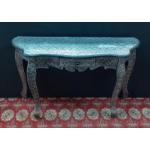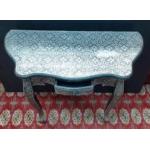 A very stylish hall table with elaborate silvered highly decorative finish with single drawer. Stands 80cm tall and 90cm wide.