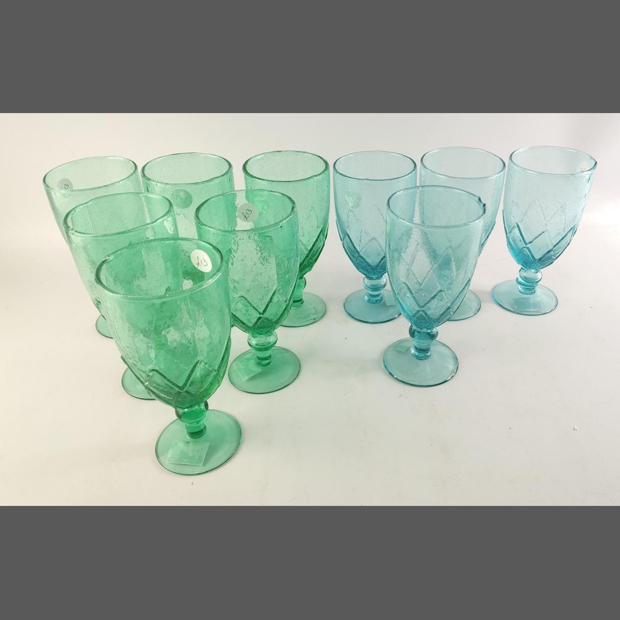 XMAS GIFTING IDEAS! Six green and 4 blue recycled bubble glass wine glasses. RRP £13 each All brand new items!