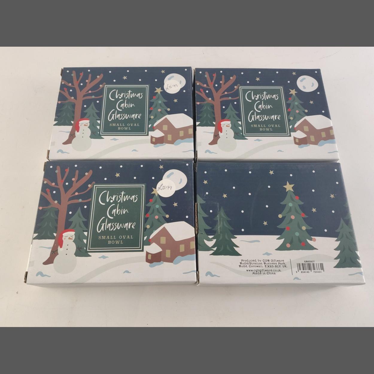 XMAS GIFTING IDEAS! Four Christmas cabin glassware trinket dishes. RRP £5.99 each All brand new items!