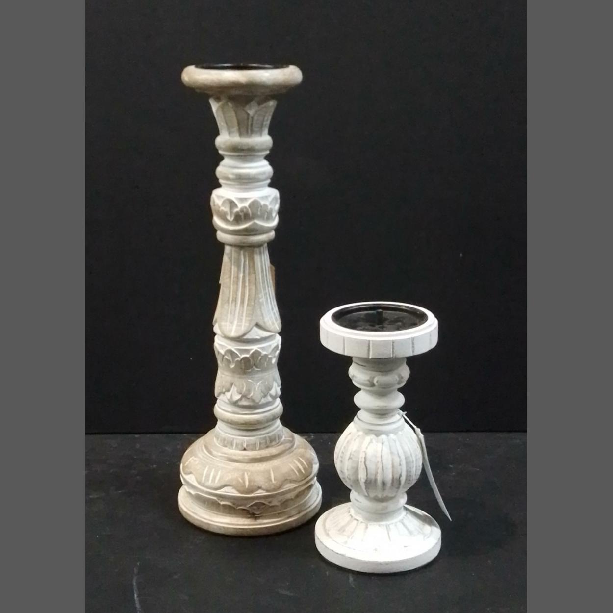 XMAS GIFTING IDEAS! - A pair of tall DISTRESSED chalk painted candle holders. Dimension each standing 30cm approx - rrp £60 All brand new items!