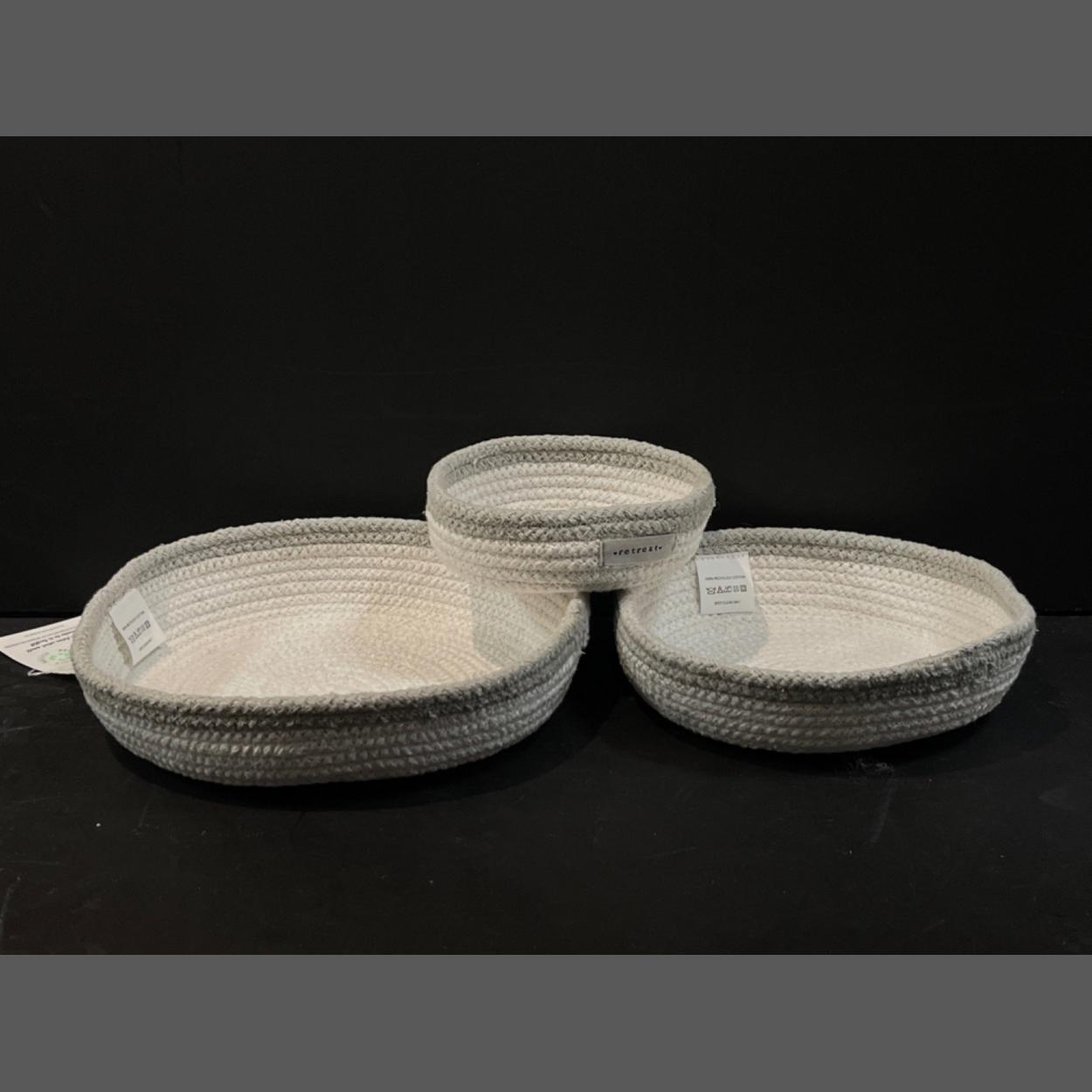 XMAS GIFTING IDEAS! - A set of three recycled cotton bowls in white and light grey - dimensions 28cm largest approx All brand new items!