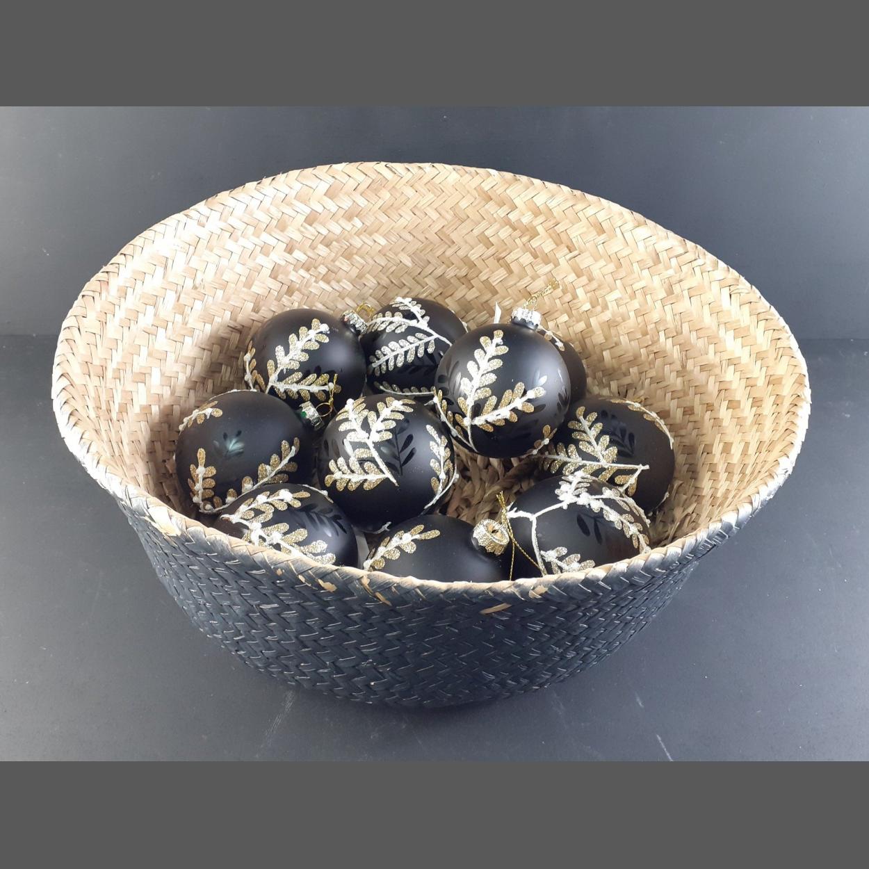XMAS GIFTING IDEAS! - A brand new woven basket containing 10 quality CHRISTMAS BAUBLES, black with gold coloured leaf decoration. RRP £6 per bauble. All brand new items!