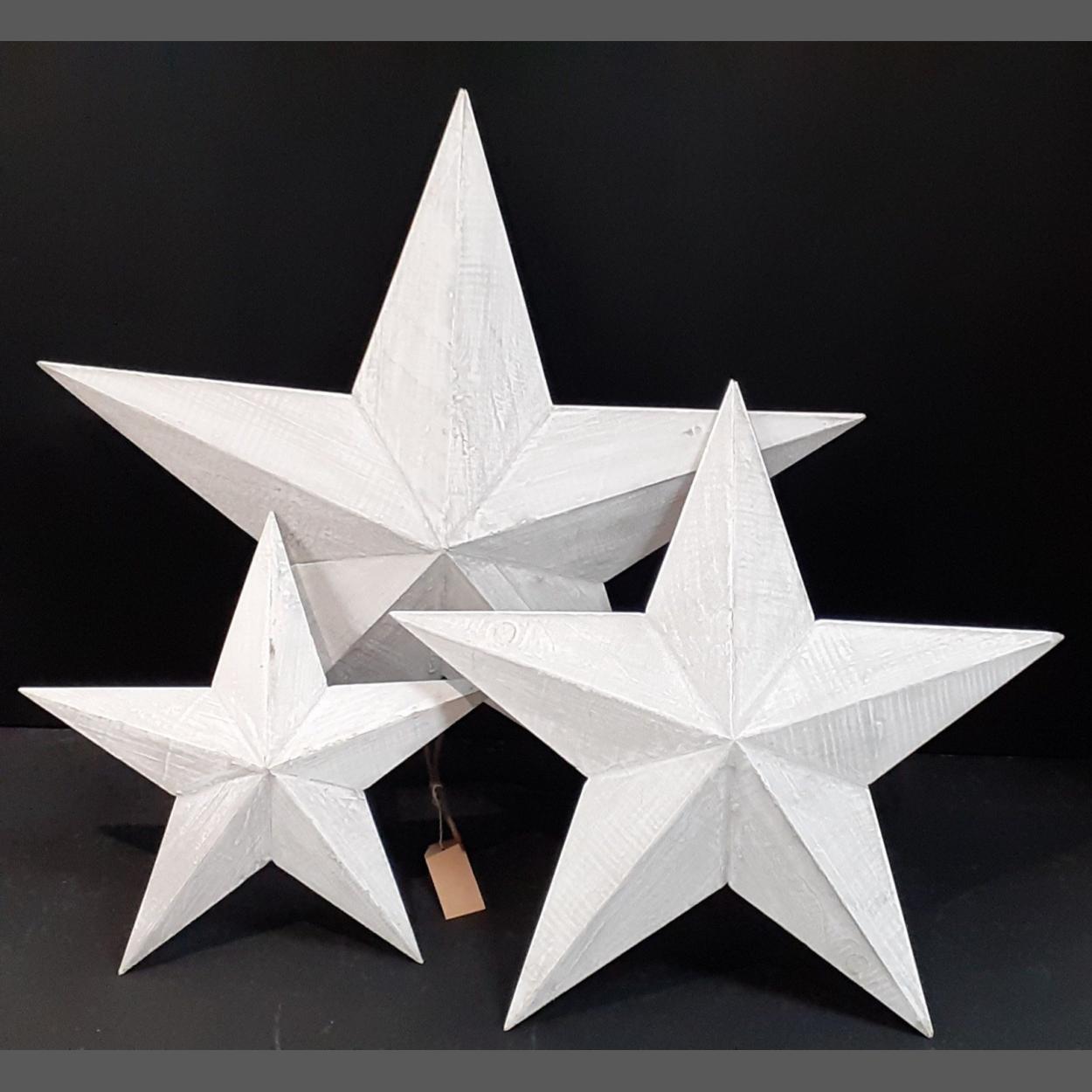 XMAS GIFTING IDEAS! - A trio of HILL distressed grey wooden STARS. Between 40 and 65cm in width. RRP £130 All brand new items!
