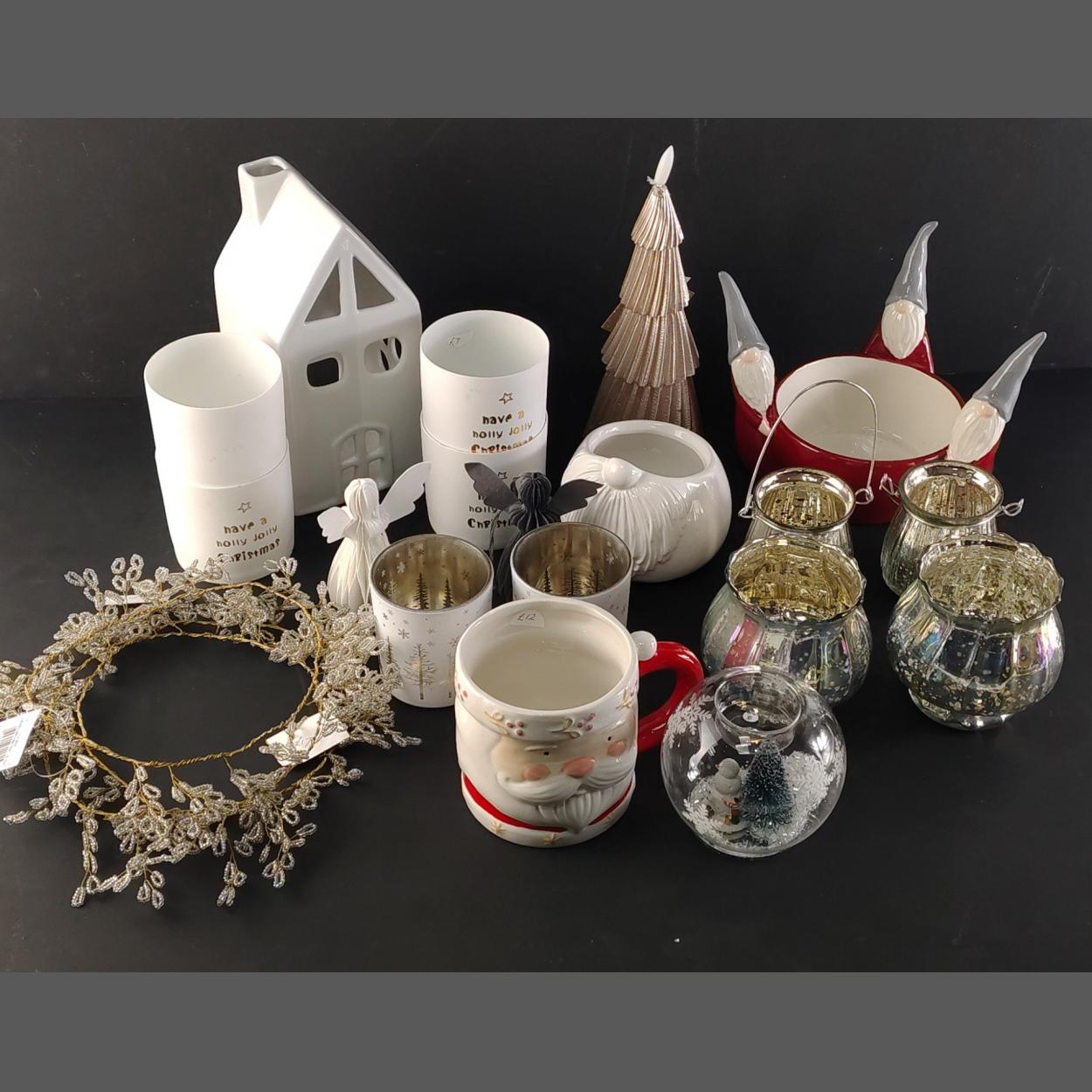 XMAS GIFTING IDEAS! - A good selection of Christmas themed candle and tealight holders, a mug and a light up tree. RRP £148. All brand new items!