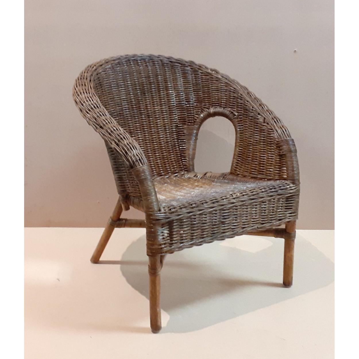 A lovely little wicker chair which stands 53cm at the rear. Super wee display piece for nursery, dolls collection or just to appreciate as a sweet little chair.