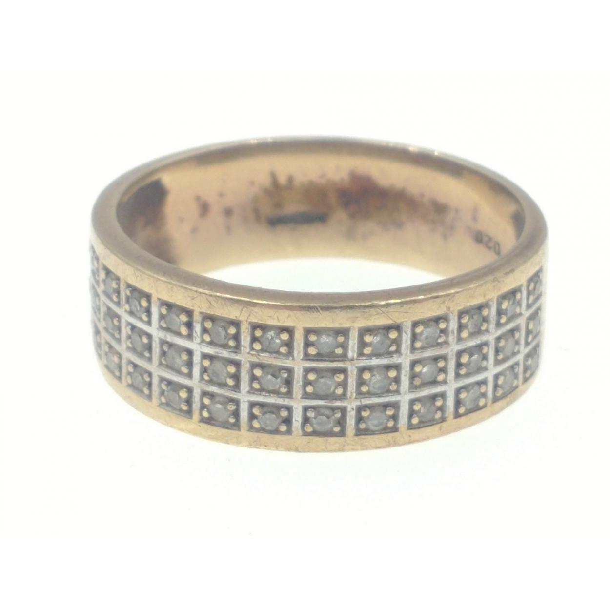 A 375 yellow gold band ring inset with 39 small diamonds(tested) - ring size O gross weight 3.92g