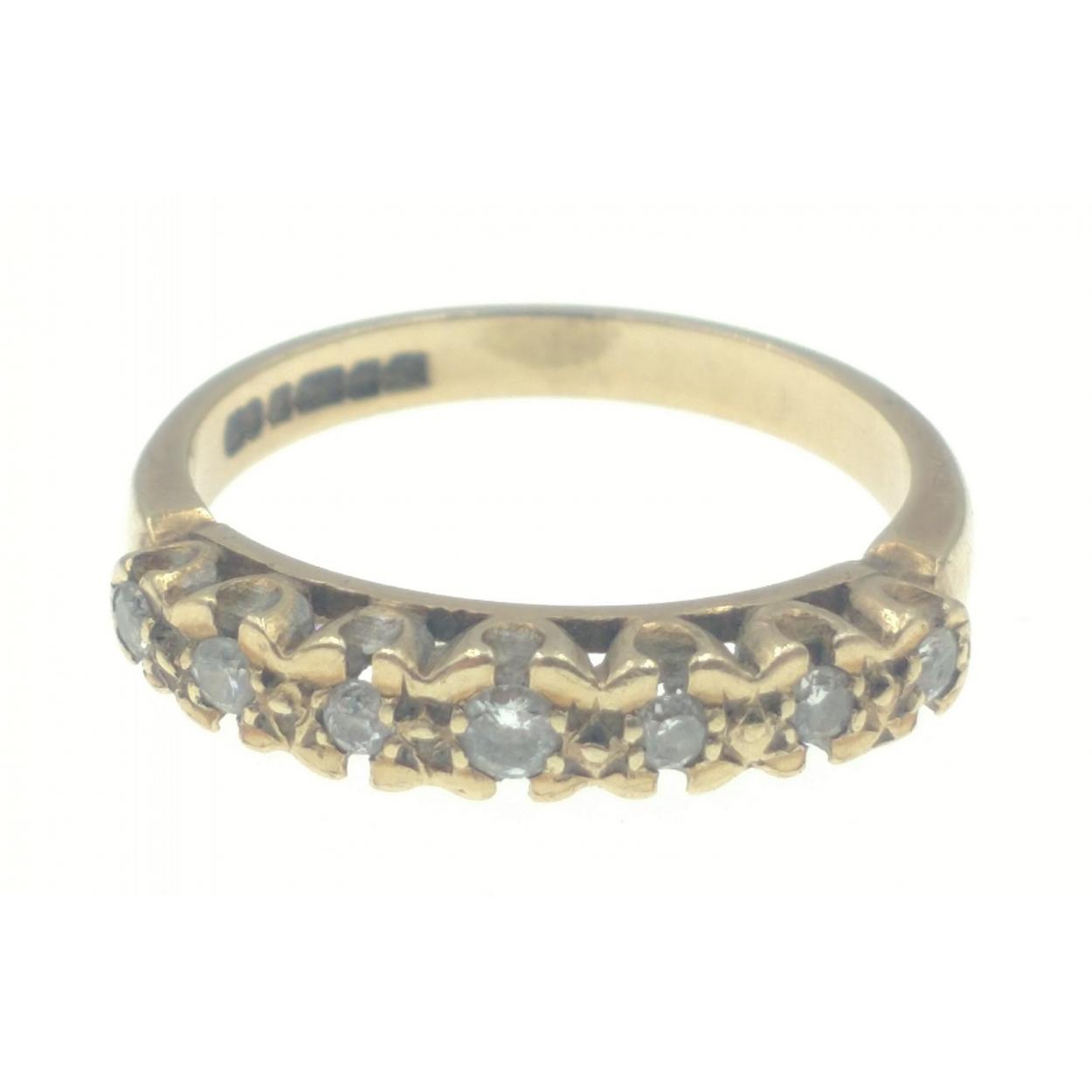 A 375 stamped yellow gold and 7 diamond(tested)ring size P - gross weight 3.05g