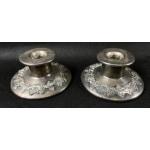 A Pair of SILVER Hallmarked Birmingham 1926 candle holders gross weight 198g - dimensions 6.5cm diameter of the bases x 6cm height approx