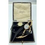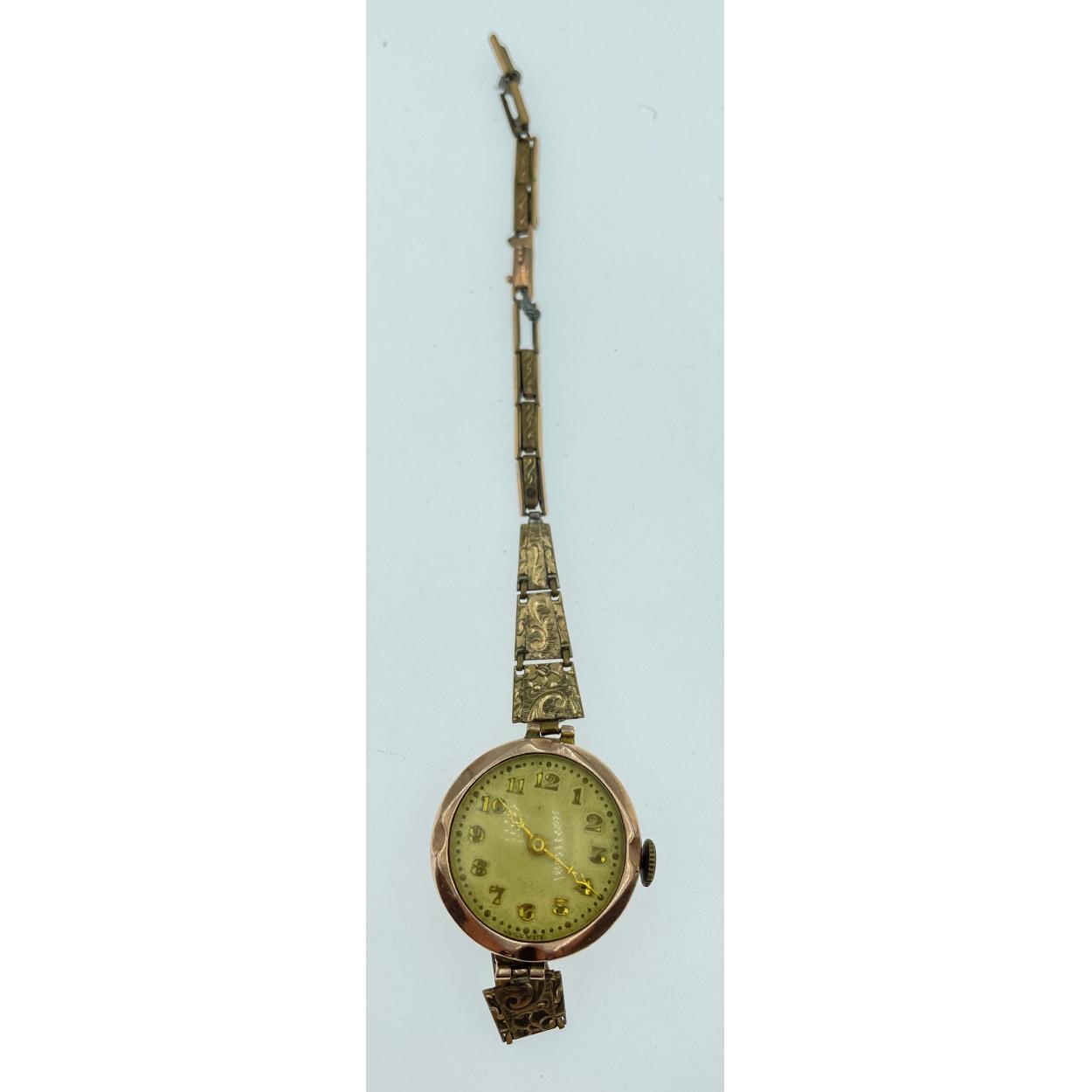 A 375 stamped watch with rolled 9ct bracelet (broken bracelet and dents to watch case) 16g gross