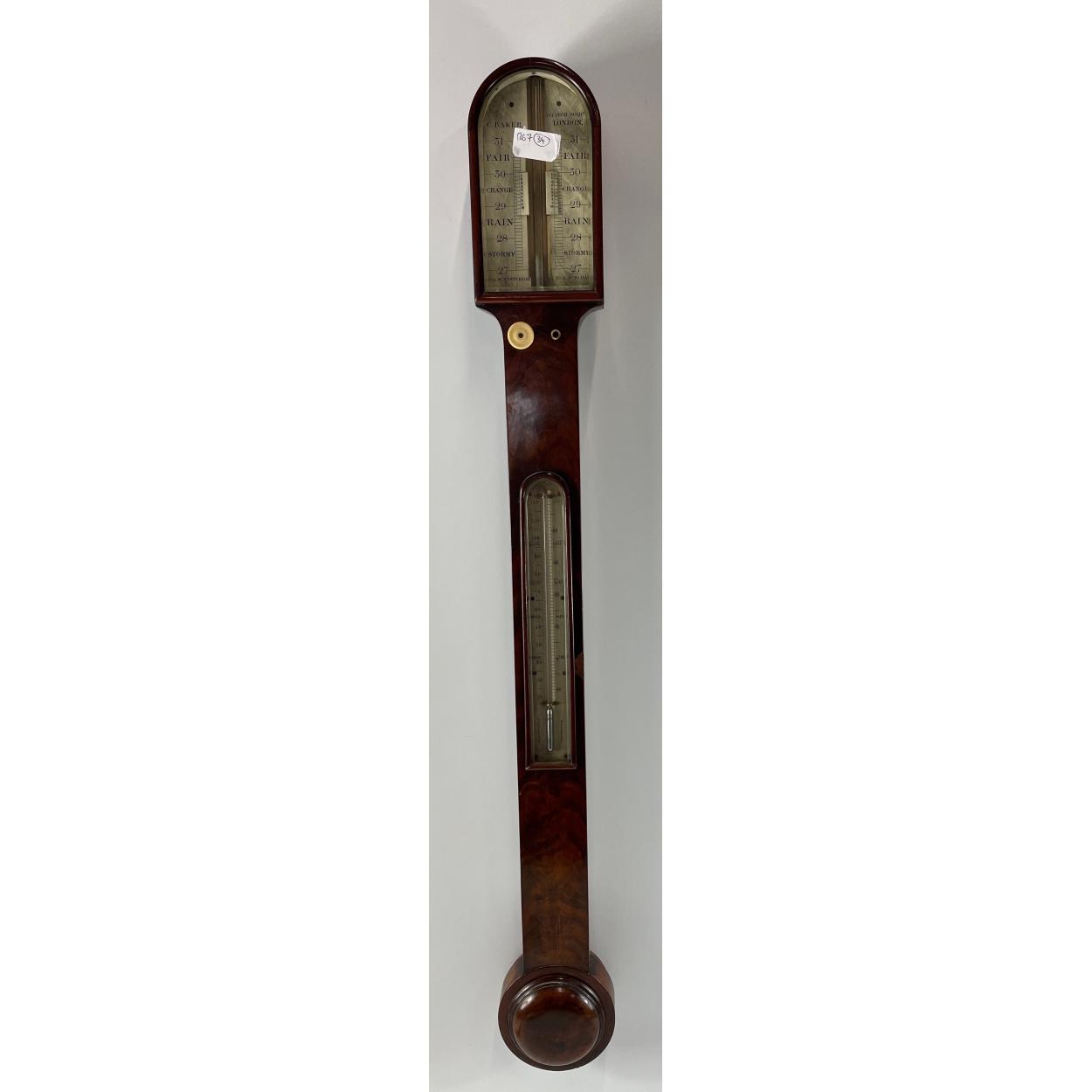 An ANTIQUE mahogany wall hanging barometer and thermometer by C Baker London dimensions 3ft height x 4” width at widest point