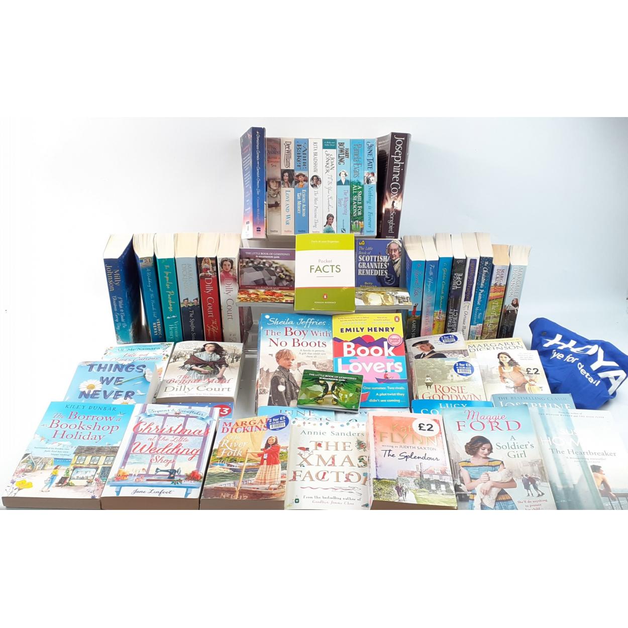 A box of modern paperback fiction books to include authors Margaret Dickinson, Dilly Court, Veronica Henry etc