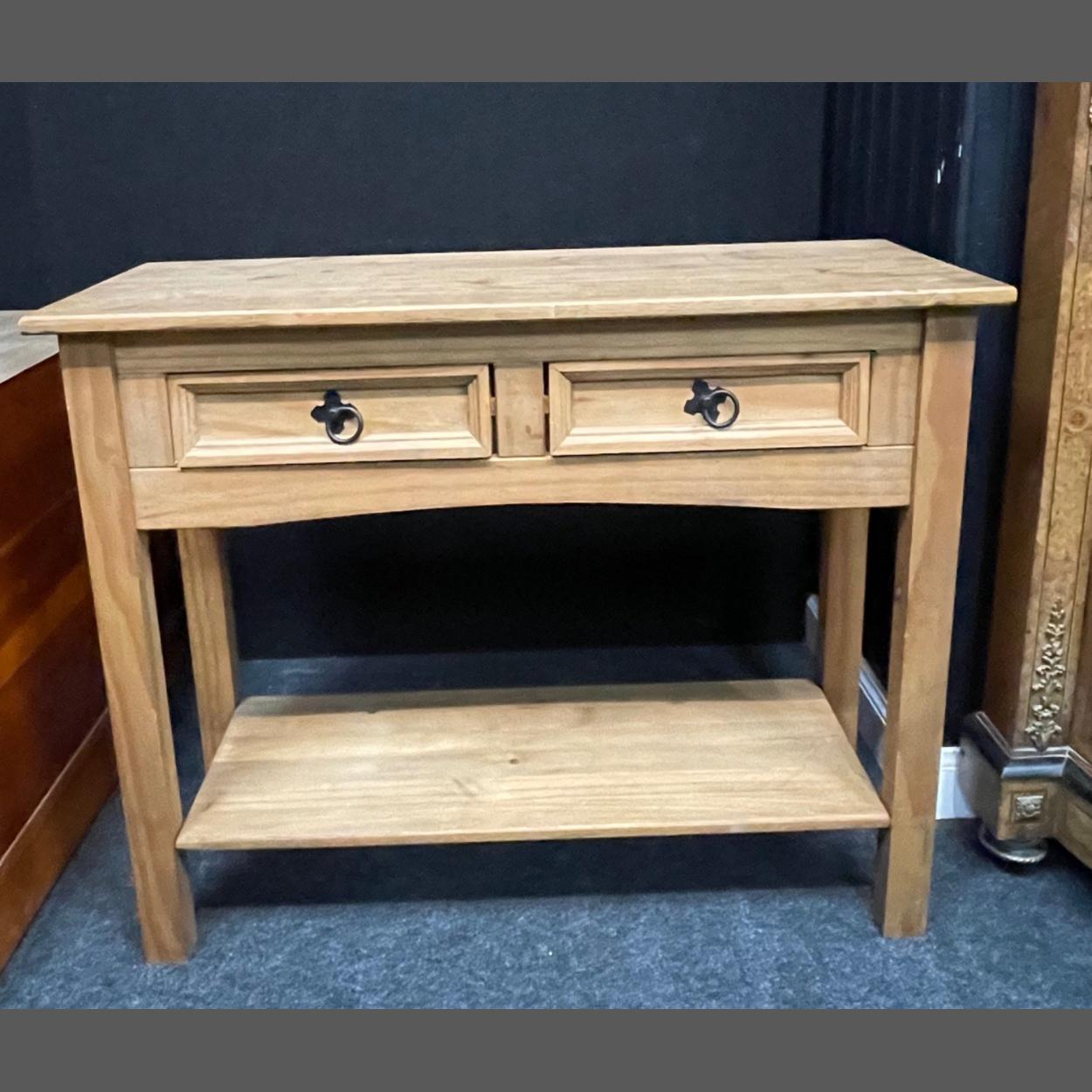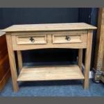 A light wood two drawer console table - 90cm length x 35cm depth x 73cm height