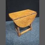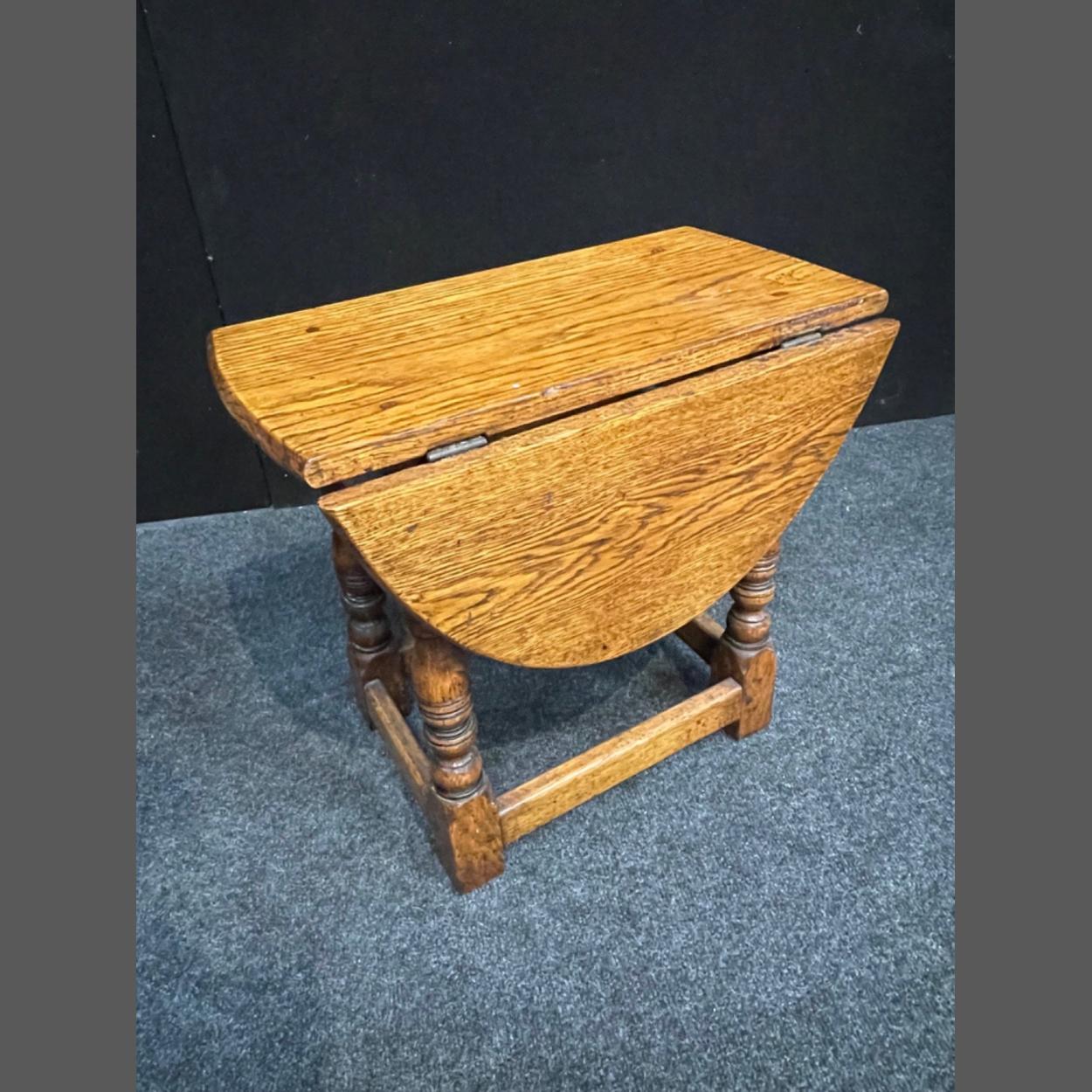 ROBUST - A low solid oak drop-leaf side table - 47cm height x unextended 30cm - extended 70cm approx