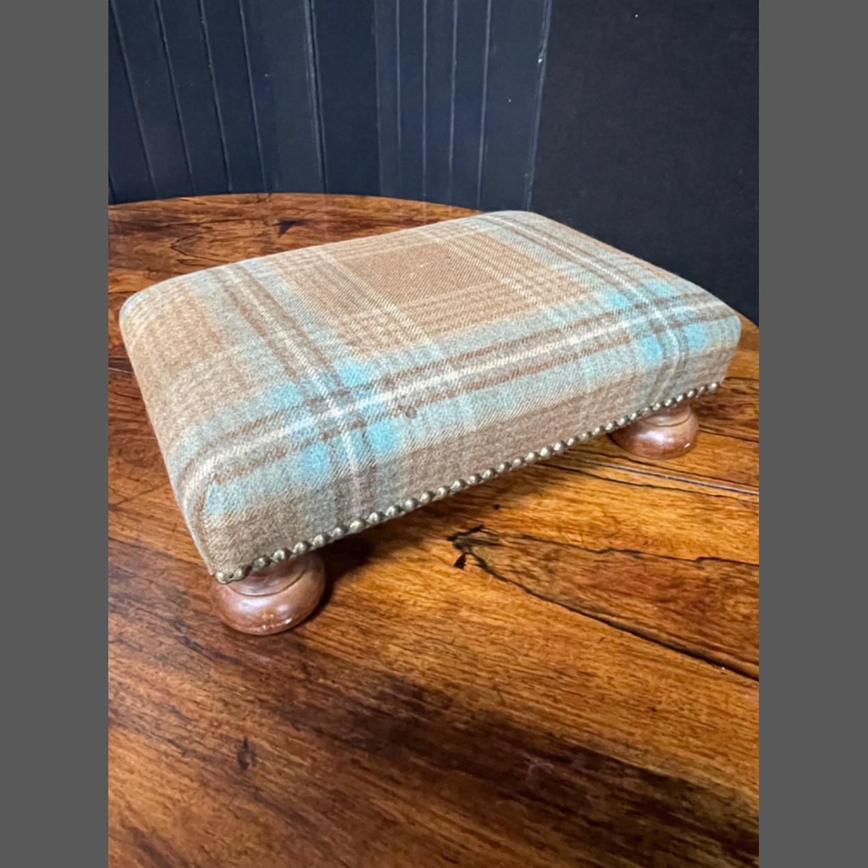 A checked pattern footstool 40cm x 30cm supported on 4 bun feet