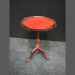A nice wee wooden WINE TABLE with red leather style top on tri-pod support legs
