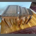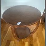 An unusual triple leg support coffee table with lower shelf - dimensions 1.5ft diameter x 18" height approx