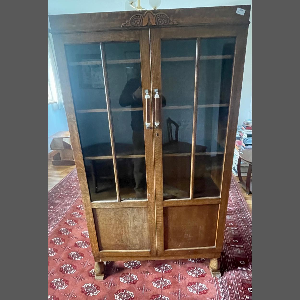 CLASSY - A circa 1930s 4 shelf bookcase with two glazed doors and original Art Deco style handles - dimensions 3ft wide x 5.5ft tall x 12" depth approx