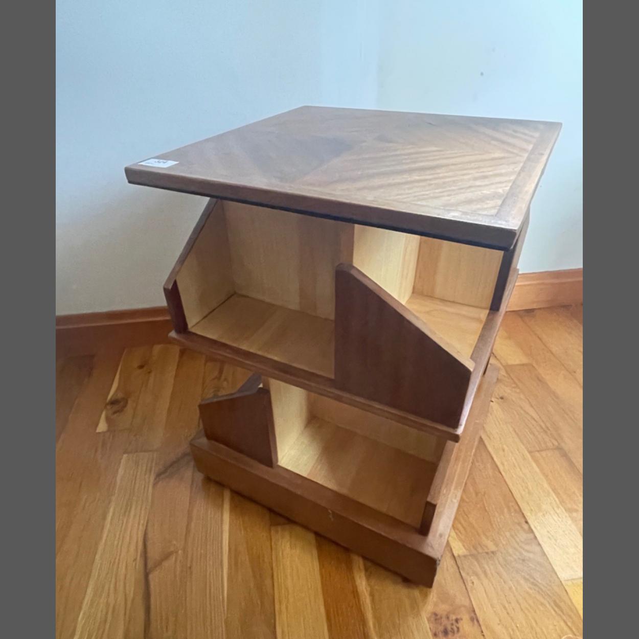 An UNUSUAL square low-level bookcase on wheels for ease of moving around - dimensions 2ft square top x 2ft height approx
