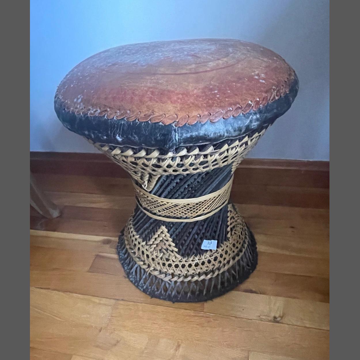 A MOROCCAN leather-work stool approx 18" height x 12" diameter approx