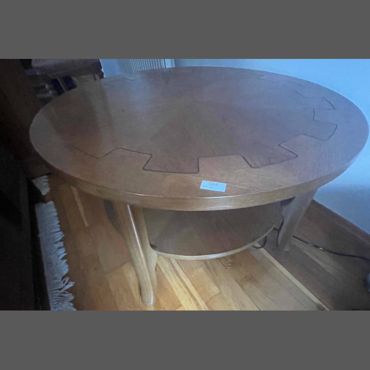 A TOP QUALITY round ash-wood coffee table with magazine shelf - diameter 2ft approx