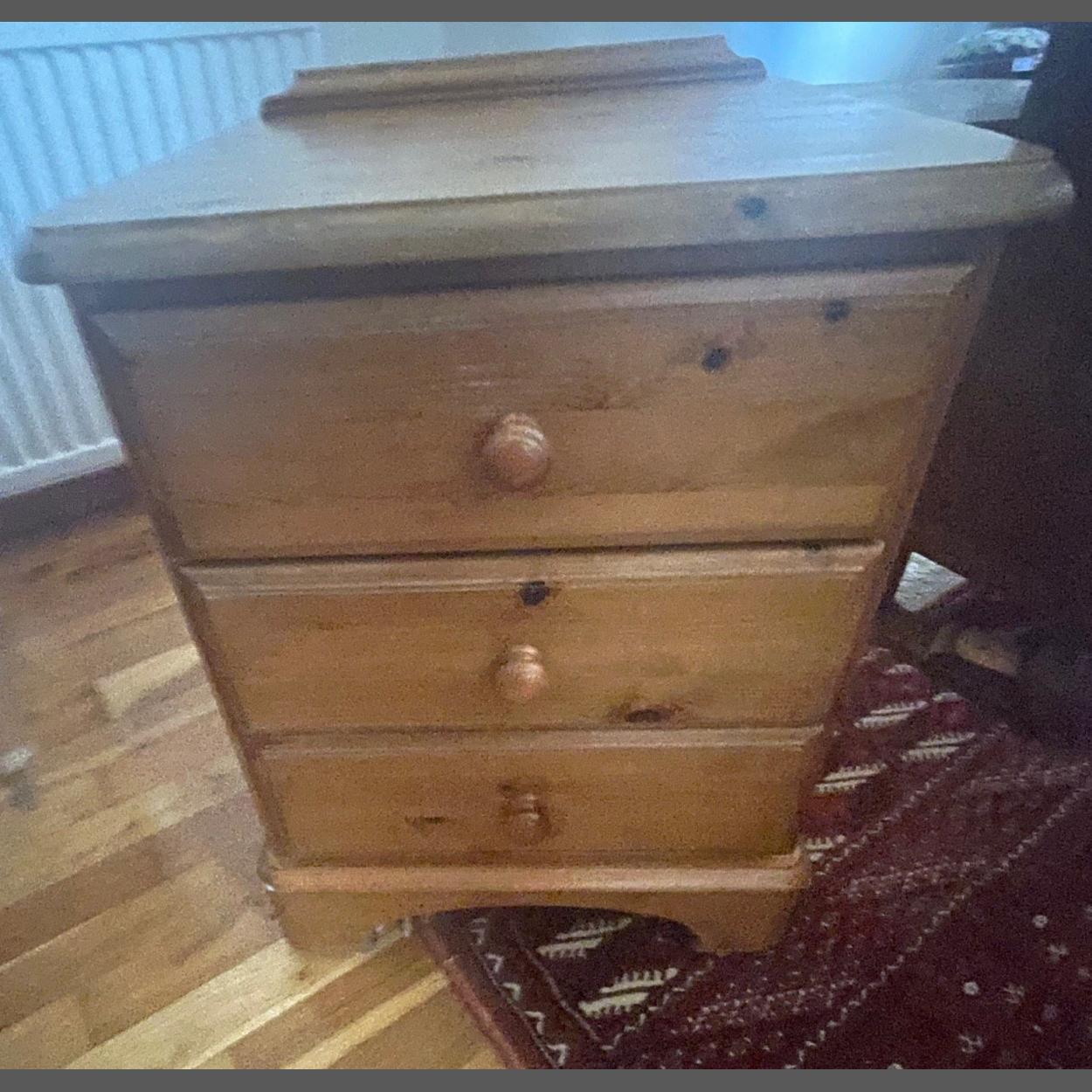 An antique pine-effect three drawer bedside cabinet - also ideal for 'upcycling'