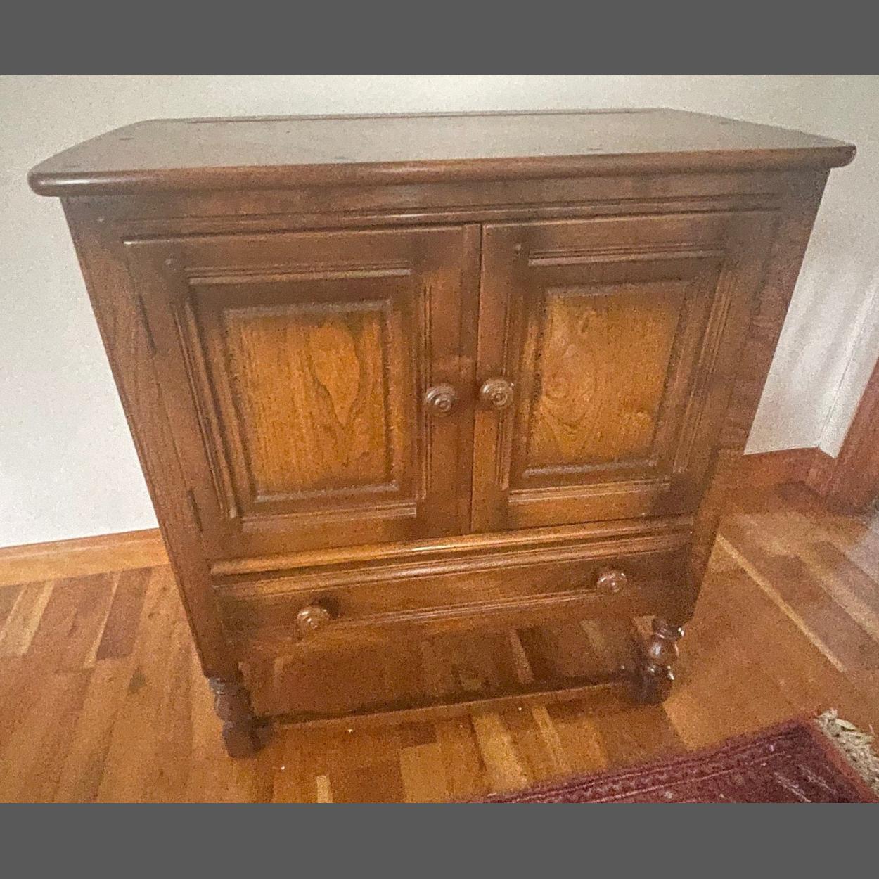 A two door dark oak ERCOL inspired cabinet - dimensions 2ft width x 14" depth x 2ft height approx