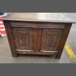 A vintage small carved wooden lidded storage box - dimensions 2 ft wide x 18" depth x 18" height approx