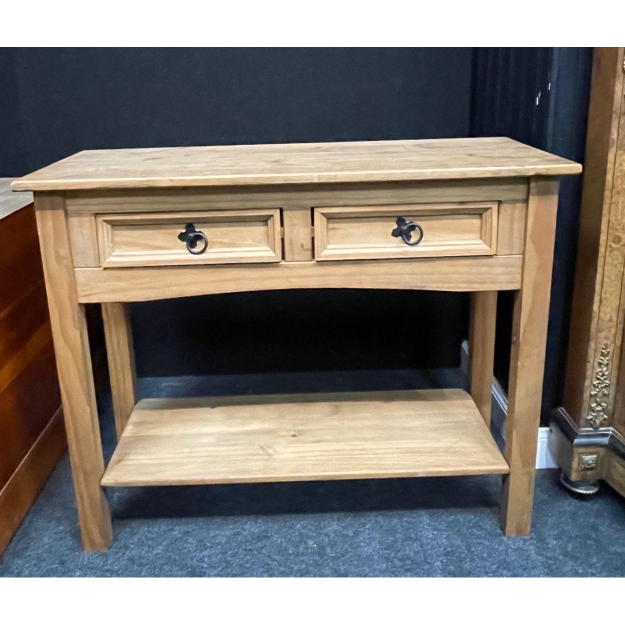 A light wood two drawer console table - 90cm length x 35cm depth x 73cm height