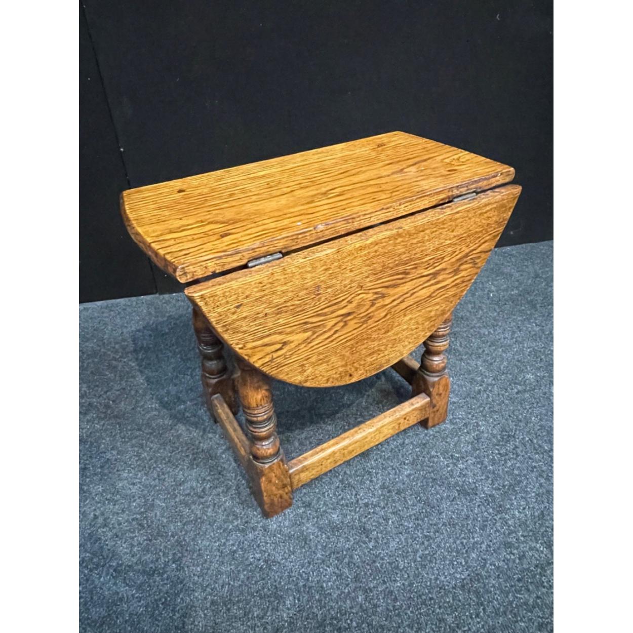 ROBUST - A low solid oak drop-leaf side table - 47cm height x unextended 30cm - extended 70cm approx