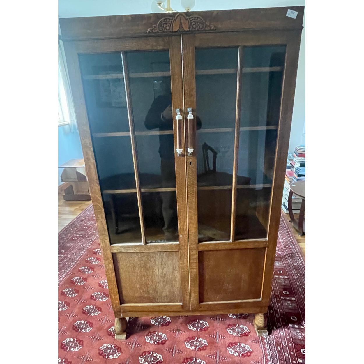CLASSY - A circa 1930s 4 shelf bookcase with two glazed doors and original Art Deco style handles - dimensions 3ft wide x 5.5ft tall x 12" depth approx