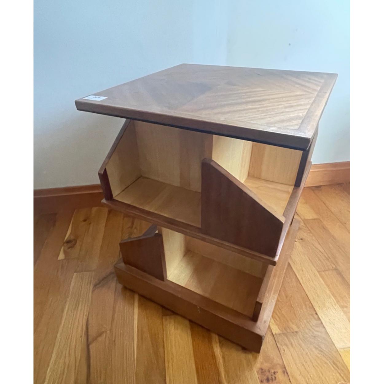 An UNUSUAL square low-level bookcase on wheels for ease of moving around - dimensions 2ft square top x 2ft height approx