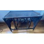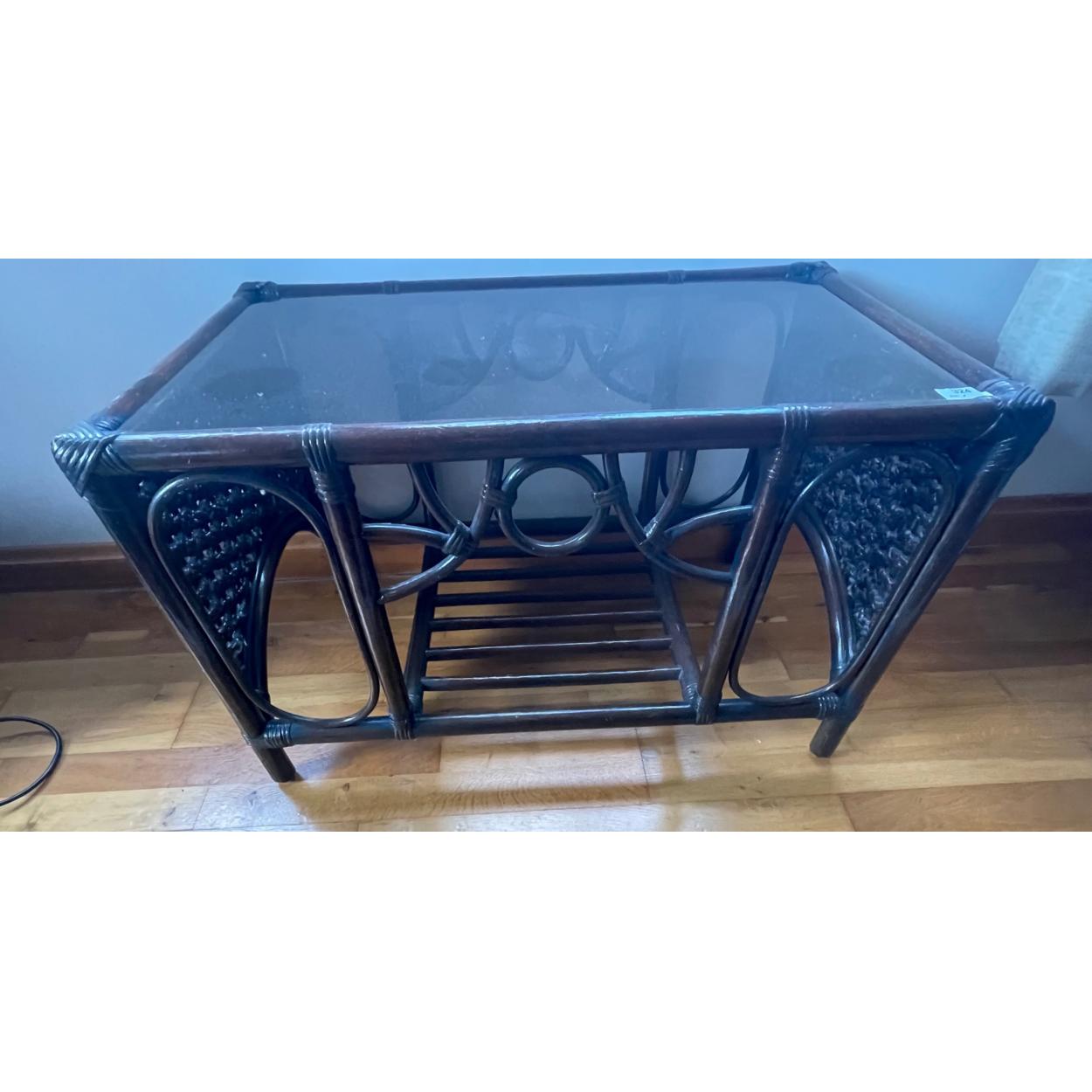 A STYLISH bamboo coffee table with glass top - nice condition - dimensions 3ft length x 18" depth x 18" height approx