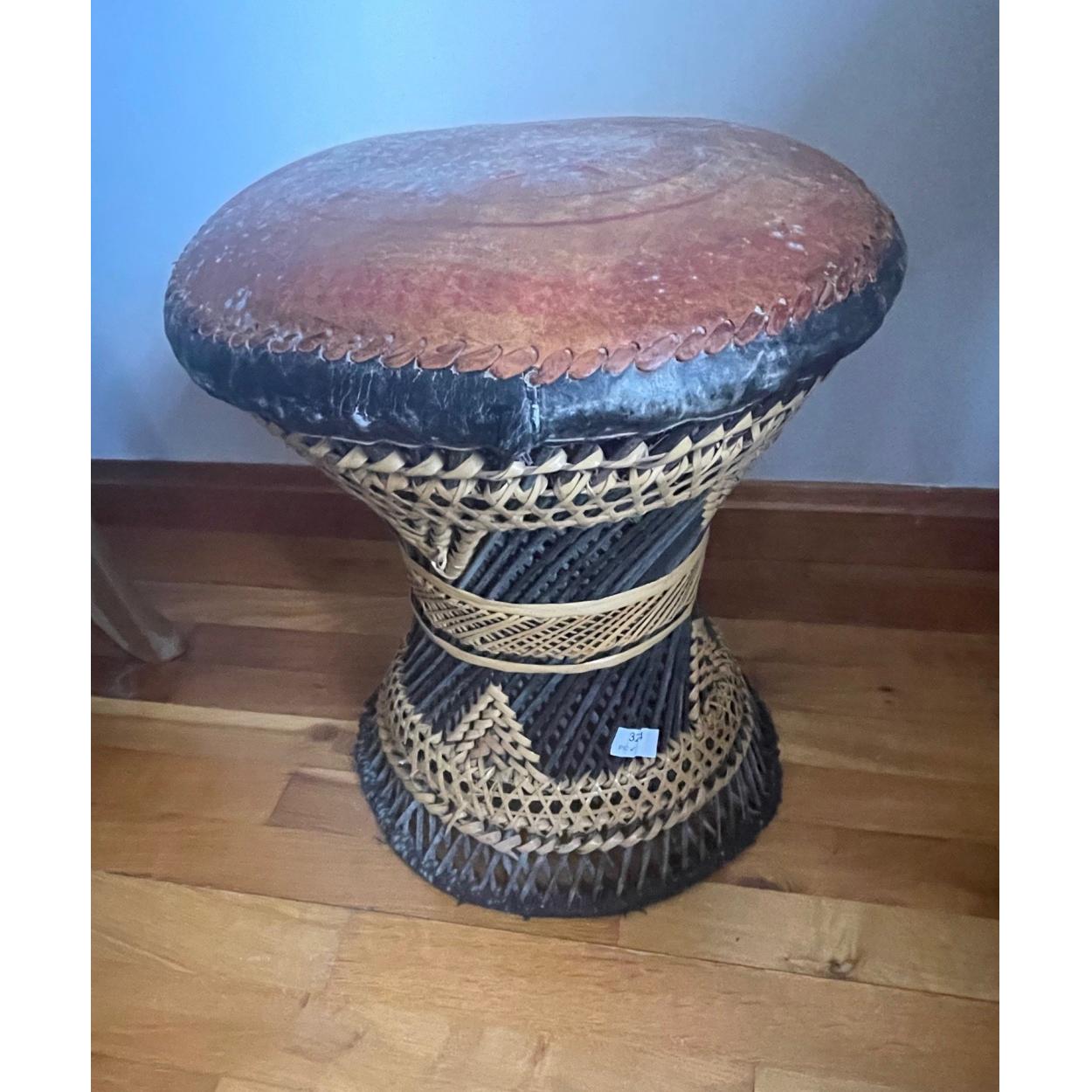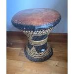 A MOROCCAN leather-work stool approx 18" height x 12" diameter approx