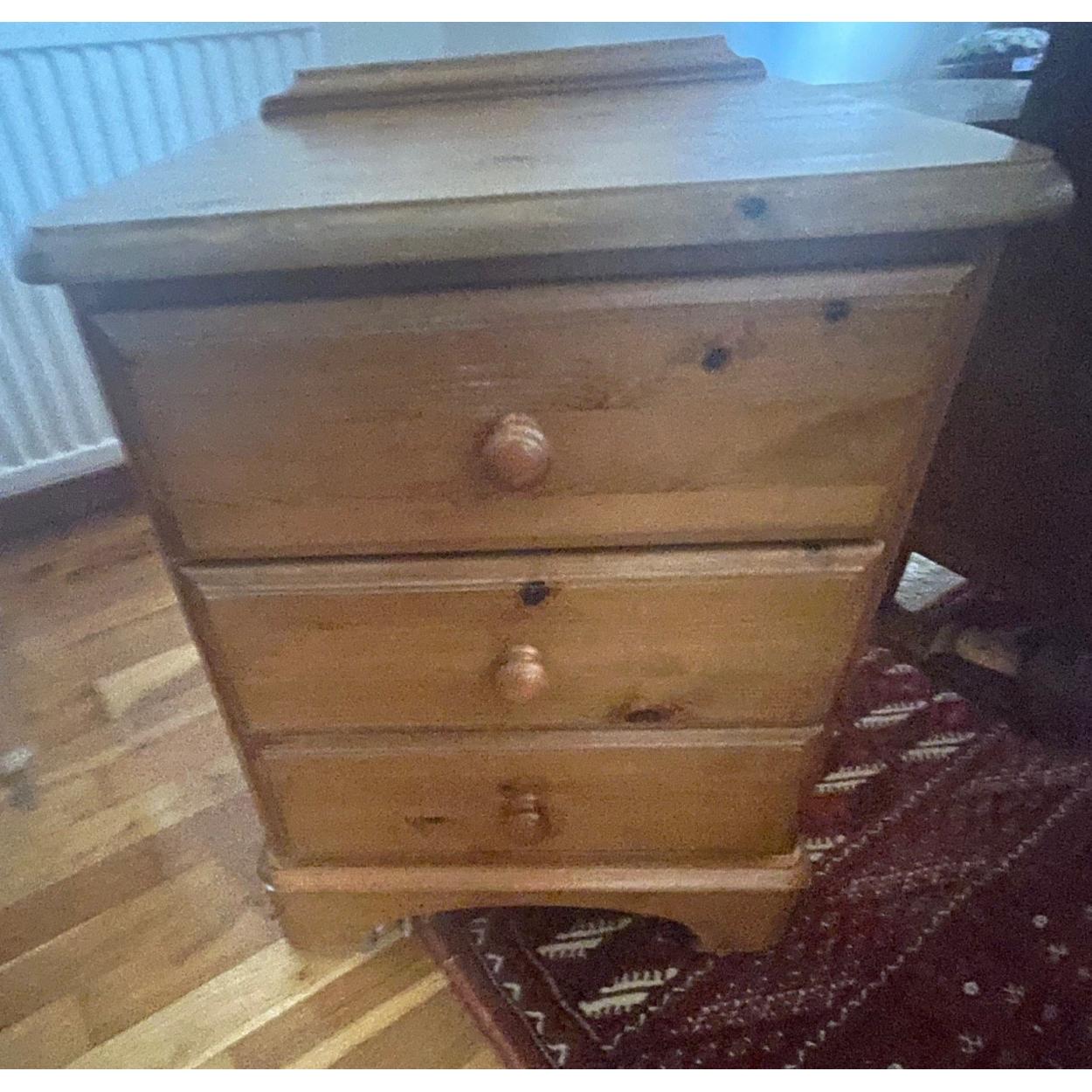 An antique pine-effect three drawer bedside cabinet - also ideal for 'upcycling'