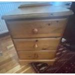 A sturdy three drawer bedside set of drawers with original handles - 18" across x 12" depth x 2ft height approx