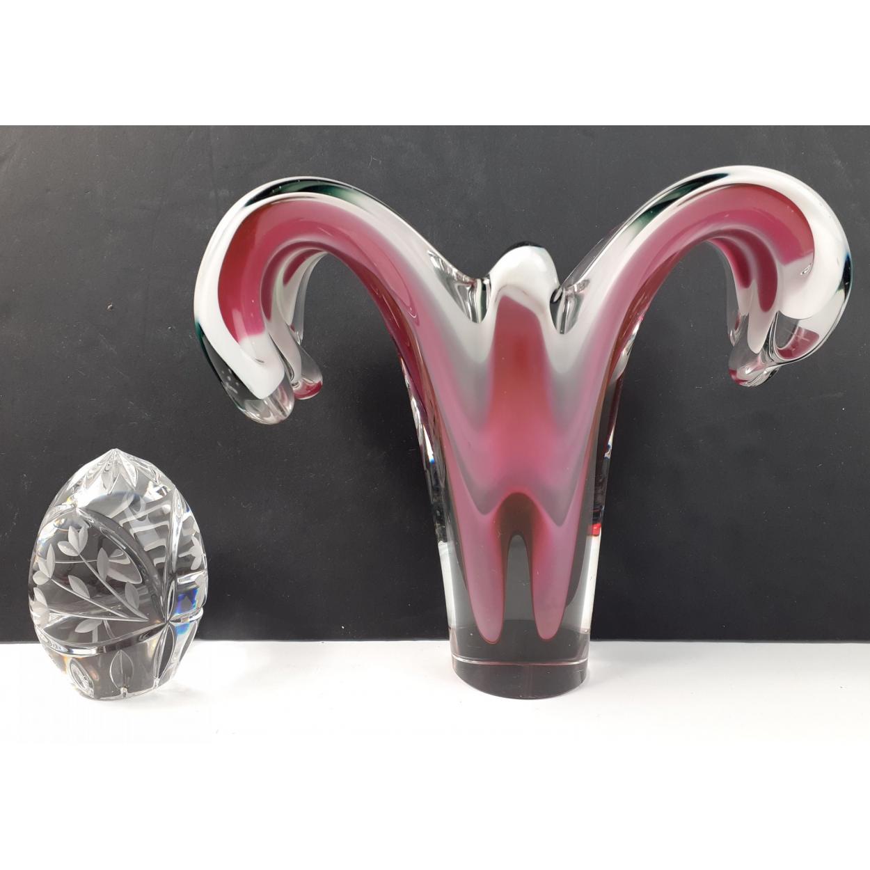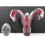 A rather lovely Scandinavian tri-colour glass vase, indistinctly signed to base in the style of coquile standing 19cm high approx and also a beautiful dump style paperweight with an etched floral design standing 9cm approx