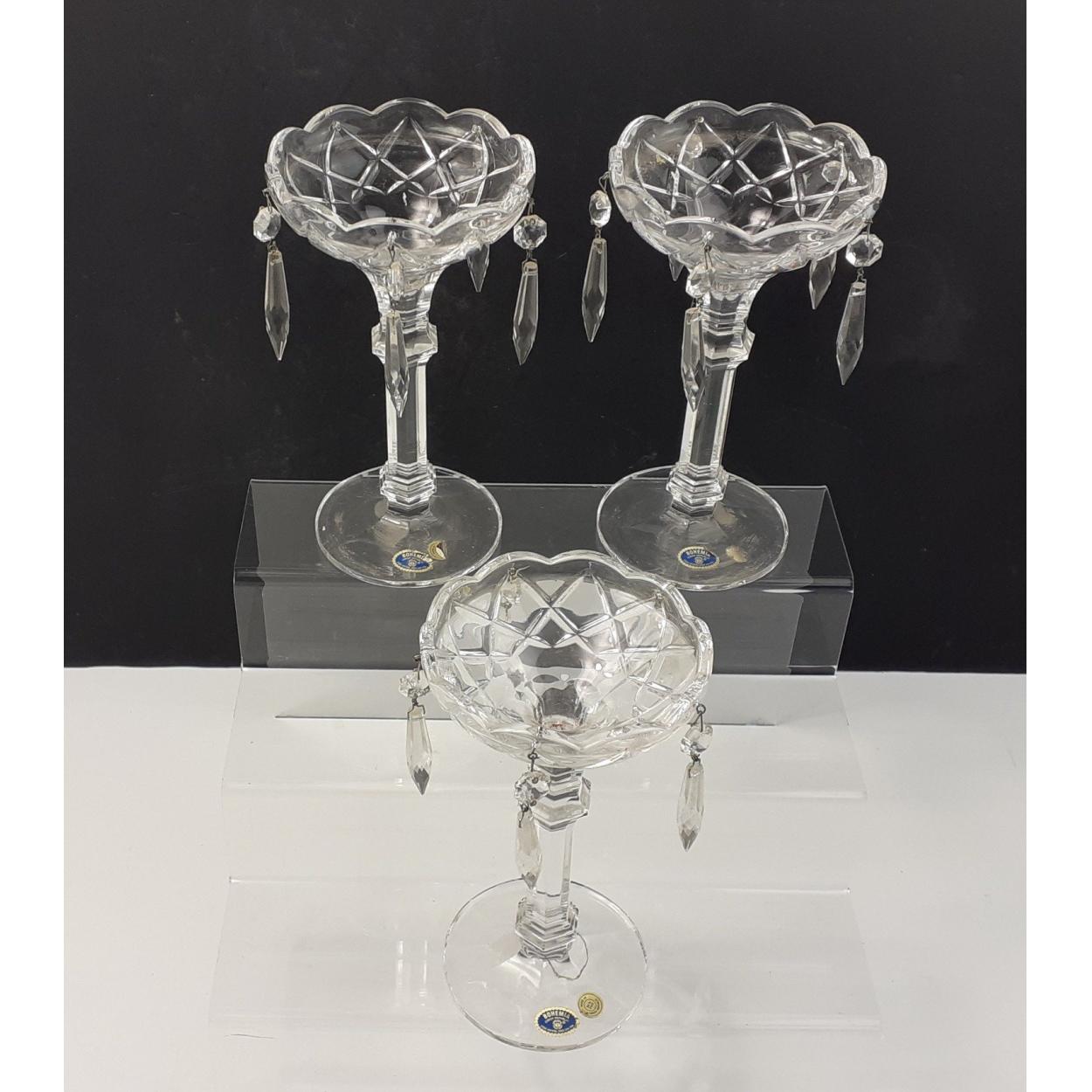 A set of three Bohemia lead crystal table lustres each 20cm tall in good order with one missing drop