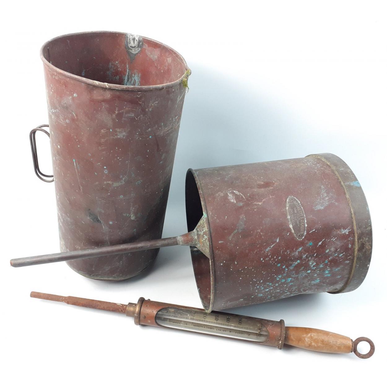 A NEGRETTI and ZAMBRA copper rain gauge 3" immersion with measure. In barn-find order from a farm building.
